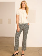 Easy elegance ready to dress up or down that's also the comfiest thing in your closet? Right this way please. We gave the Plaza Pant a subtle bootcut shape and a little bit of stretch to keep things comfortable and easy. The canvas weave brings out the texture of our Lacy Diamonds print. A hook and bar closure and classic fly front at the waist keeps the design sleek.