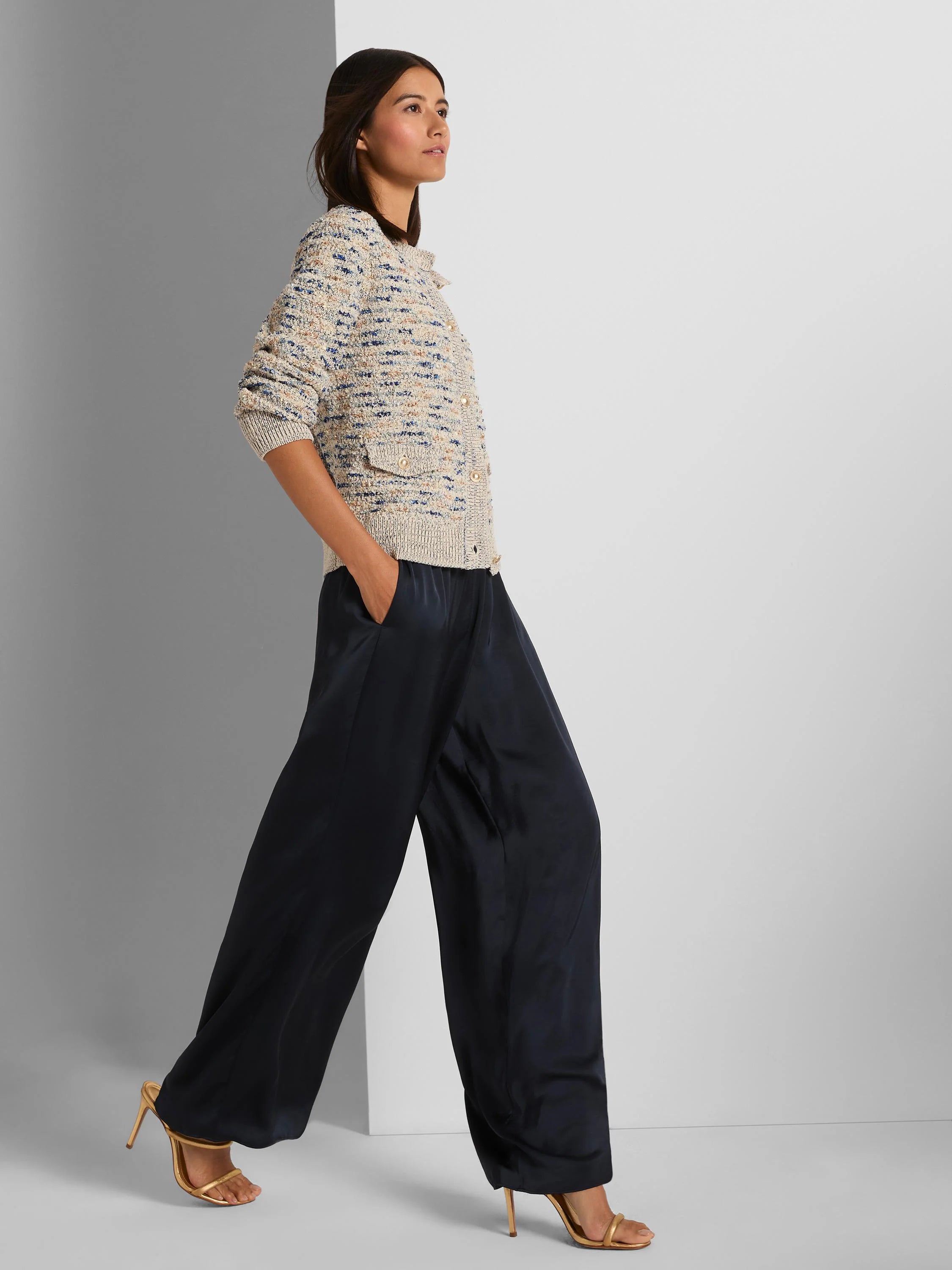 A must-have layer with distinctive character, the Always Shining Knit Sweater Jacket is crafted from a super special space-dye yarn in a blue-and-cream mix. The ribbony texture is brought to life with a refined tucking technique, giving the knit dimension and depth. Finished with upgraded hardware and functional pockets, it’s the perfect balance of sophistication and wearability.