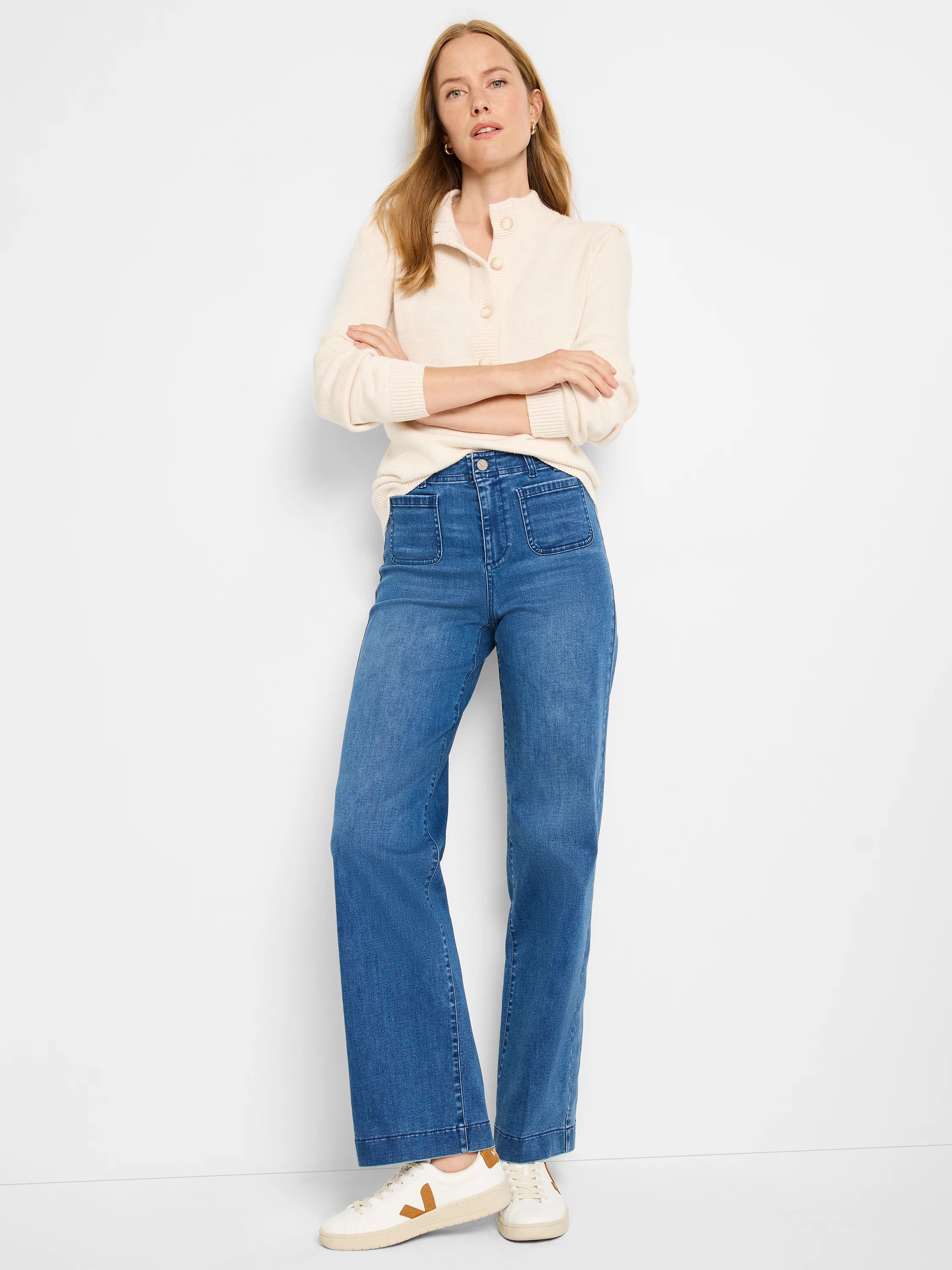 An updated essential sweater to lift your everyday look. With a band collar, classic button henley placket, and pleat detail at the top of the sleeve to create a more feminine shape. Midweight with long sleeves and a hem that sits at the hip. Throw it on with jeans for a put-togetherh look that's as easy as it is timeless.