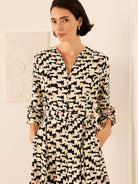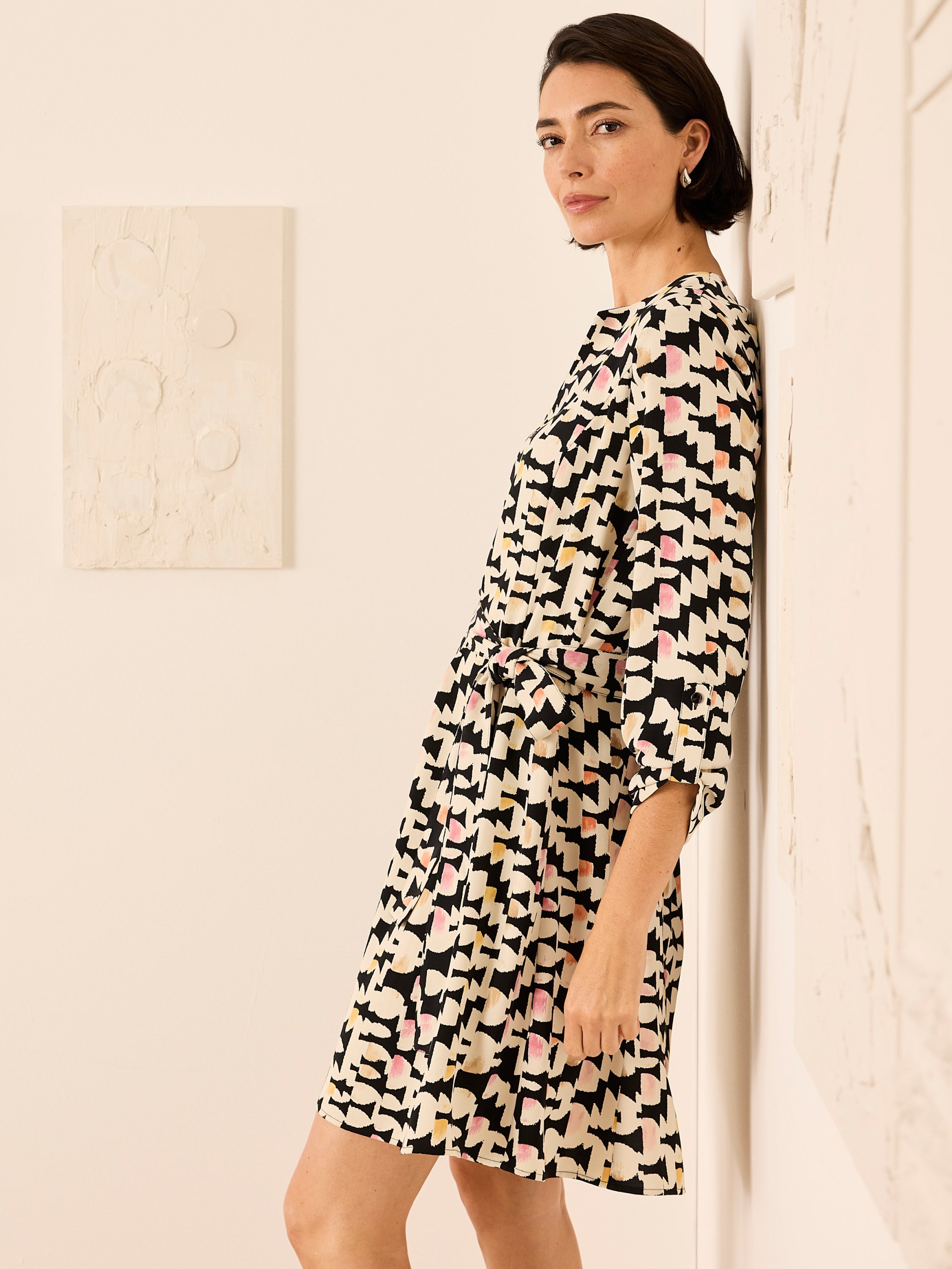We're mad about mod. So naturally we created the Mod Mix Zelda Dress, a shirting-inspired style in a geo dot print. Double crepe fabric reduces sheerness, while a waist belt and adjustable sleeve let you customize your fit. Best of all, it has pockets.