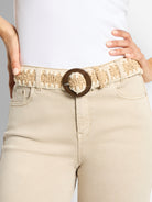 A chic accessory for those who know that the right details make all the difference. Crafted from natural raffia with a refined woven texture, this belt features artful blanket stitching for a touch of extra artisanal flair. Its lightweight design and neutral tones make it a versatile piece, perfect with your favorite pant or to create shape on a breezy dress. Combining traditional plant-based materials and modern design, she makes adding natural charm a cinch.