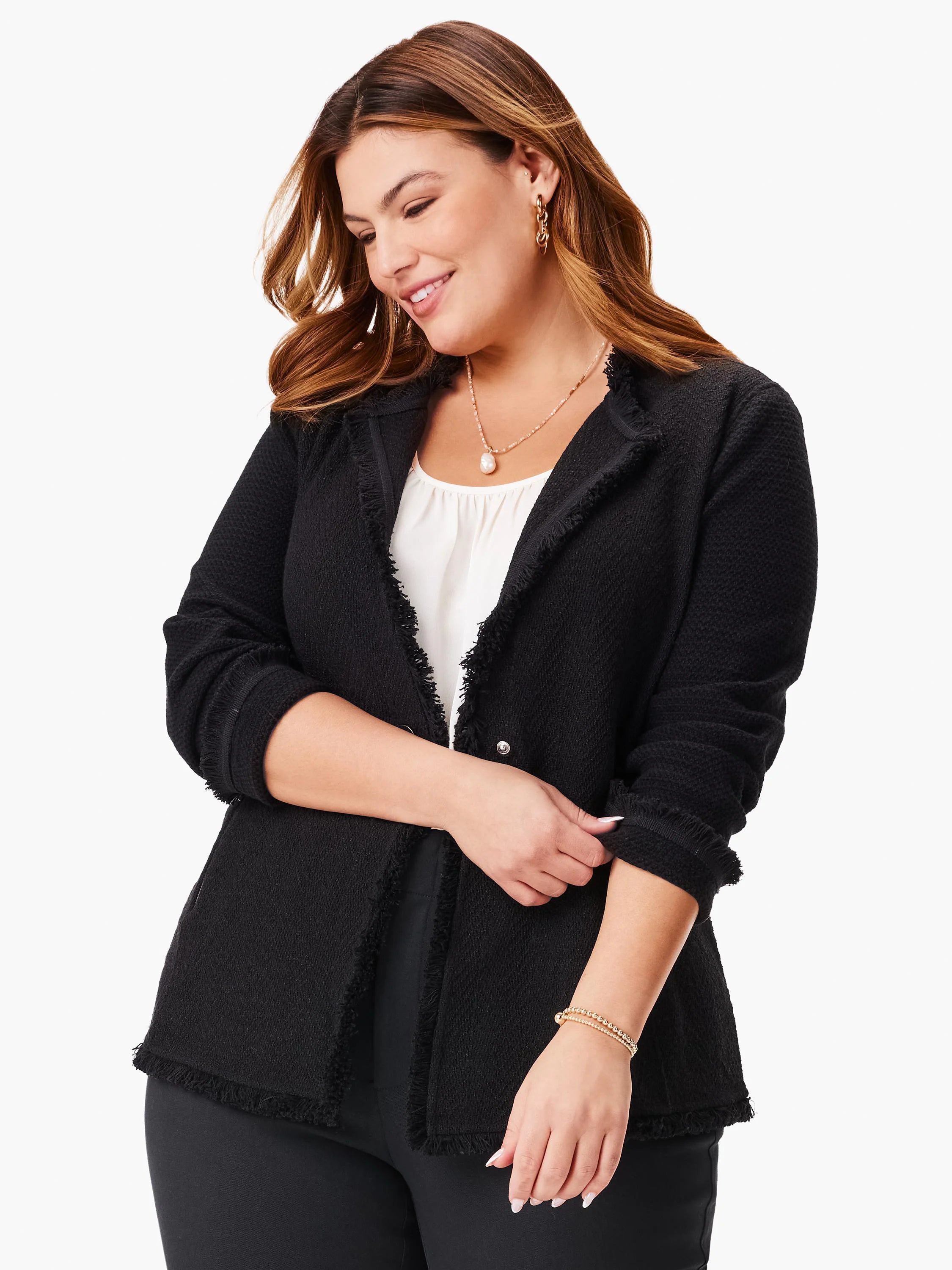 A key woven layer for any ensemble, the shirring at the center of this top draws the eye and creates a the perfect piece to build an outfit around. Designed to match the colors of our key bestselling Fringes, but guaranteed to go with anything in your wardrobe. Sits at the hip and designed to have a slightly roomier fit.